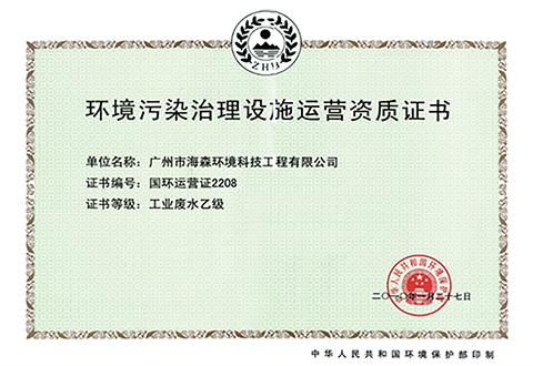 環(huán)境污染治理設(shè)施運營資質(zhì)證書