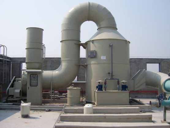 酸性廢氣的治理中,其中酸性廢氣凈化的主要方法是將酸性廢氣用三級堿液噴淋,再有煙囪排放,用該方法吸收酸性廢氣時,在真空抽氣泵上安裝密閉罩,將車間內(nèi)氣體排放,進入裝有填料的噴淋塔。該工藝去除酸性廢氣的效率可達90%以上。