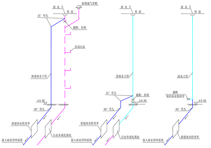 3.整改合流管接入污水情況:將此合流管改造成污水管,另新建雨水支管用于排除雨水。