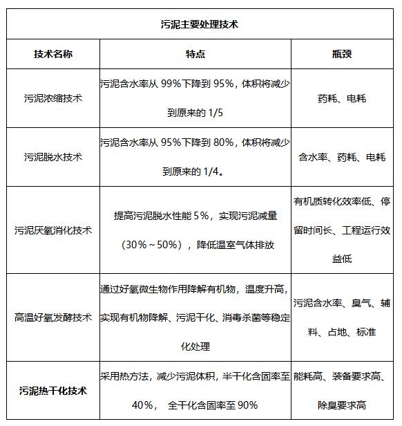 目前我國常用的污泥處理技術(shù)主要包括污泥濃縮技術(shù)、污泥脫水技術(shù)、污泥厭氧消化技術(shù)、高溫好氧發(fā)酵技術(shù)、污泥熱干化技術(shù)等。