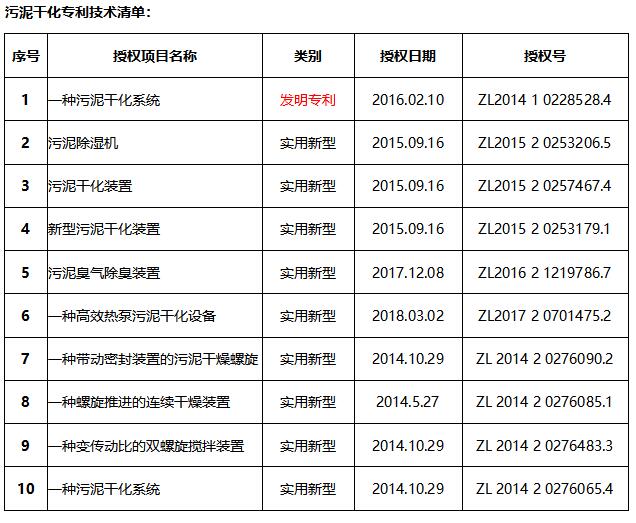 2012年公司進(jìn)入污泥干化技術(shù)領(lǐng)域,成立專門的研發(fā)團(tuán)隊(duì),進(jìn)行污水污泥處理處置技術(shù)研究,目前已申請并授權(quán)了一種污泥干化系統(tǒng)發(fā)明專利、污泥除濕機(jī)、新型污泥干化裝置、一種高效熱泵污泥干化設(shè)備等10項(xiàng)實(shí)用新型發(fā)明專利。